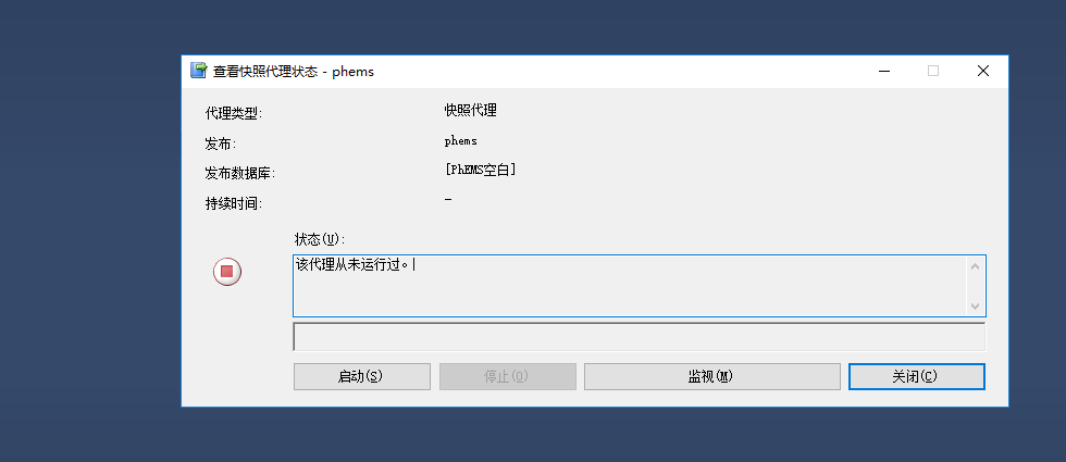 在发布的服务器上右键,查看代理状态,出现了错误:该代理从未运行。