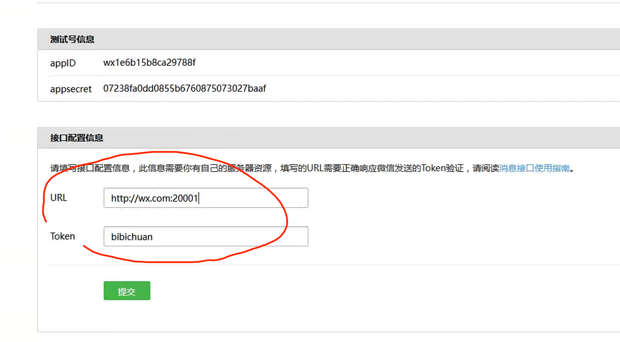 3.微信公众平台测试号的申请与使用 URL:就是你后台服务器的url。必须是80端口(微信强制要求,其它端口或者其它端口映射的虚拟端口均不可以),用来接收关键词回复,菜单定义等功能。