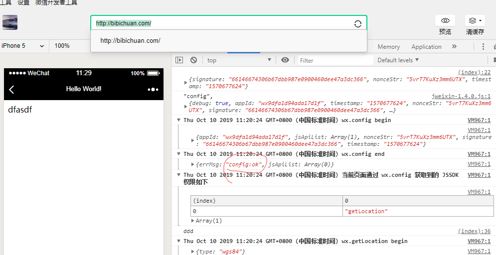 (6) 打开微信开发者工具,输入网址:http://bibichuan.github.io/,测试结果(我把网站放到IIS服务器的80端口上了,也可以用其他的服务器)。