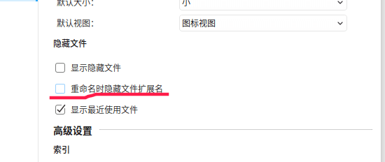 修改文件名的时候,双击文件名,就直接修改了,无法修改文件后缀。打开文档管理器->设置,将重命名时隐藏文件后缀取消勾选。