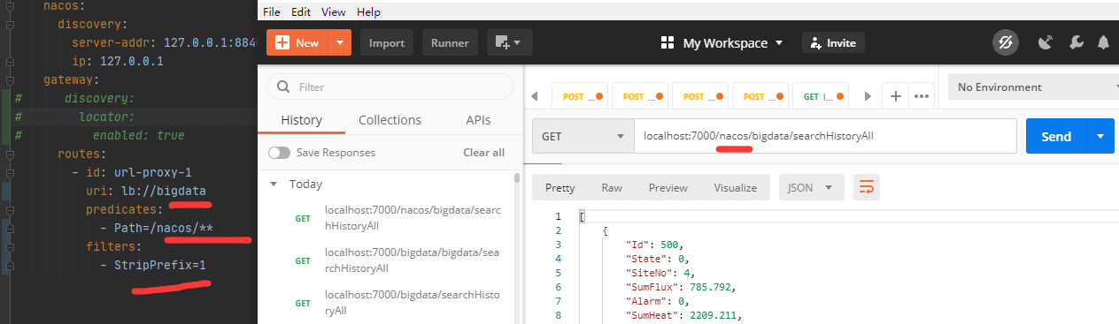 | server: port: 7000 spring: application: name: ${app-name} cloud: nacos: discovery: server-addr: 127.0.0.1:8848 ip: 127.0.0.1 gateway: routes: - id: url-proxy-1 uri: lb://bigdata predicates: - Path=/nacos/** filters: - StripPrefix=1