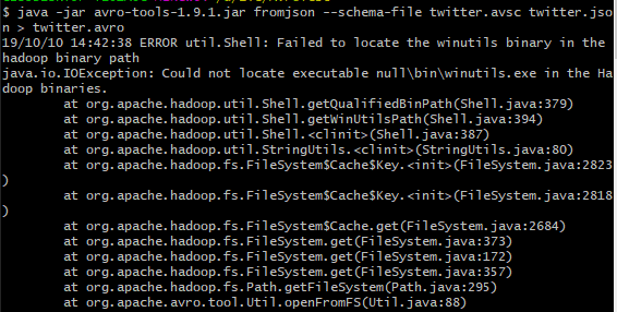 { "type":"record", "name":"twitter_schema", "namespace":"com.miguno.avro", "fields":[ {"name":"username", "type":"string", "doc":"Name of the user account on Twitter.com"}, { "name":"tweet", "type":"string", "doc":"The content of the user‘s Twitter message"}, { "name":"timestamp", "type":"long", "doc":"Unix epoch time in seconds"} ], "doc:":"A basic schema for storing Twitter messages" }