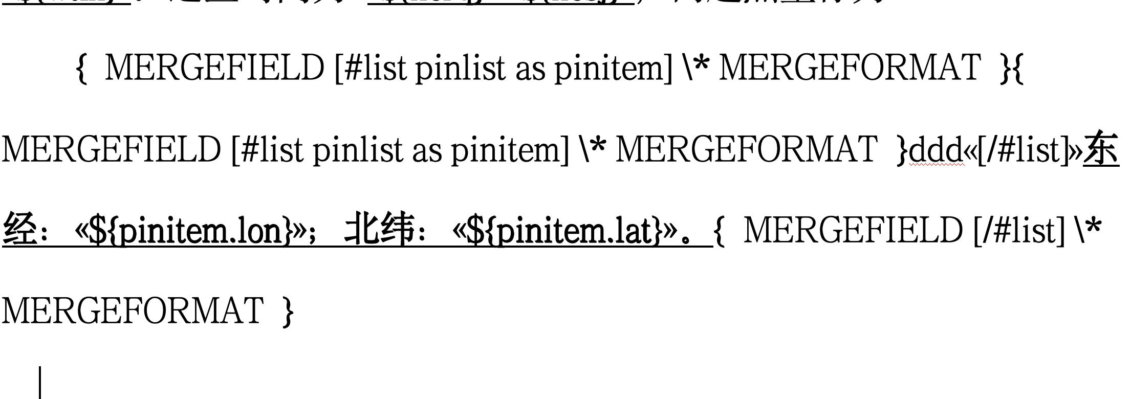 中间就用:MERGEFIELD ${item.lat},调用列表中的变量