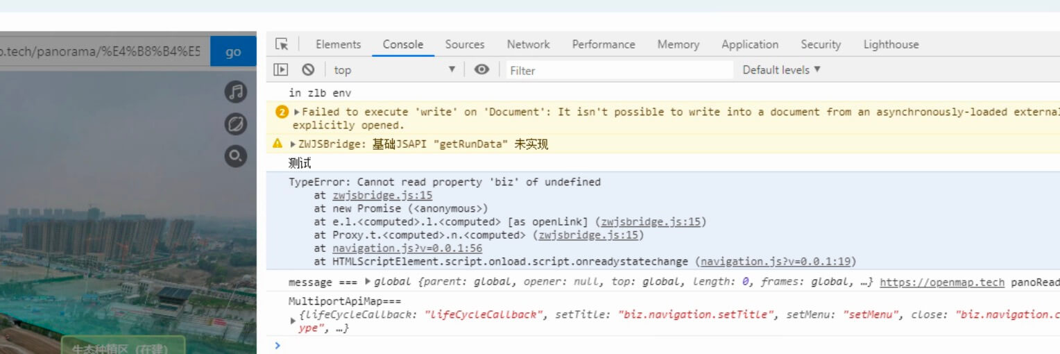 调用 ZWJSBridge.openLink 也会出现问题: TypeError: Cannot read property ‘biz’ of undefined,最后调用不成功,但是使用真机调试就可以调试成功。
