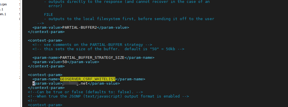 解决方法有三种,我这里只写一种,就是修改geoserver的web.xml文件,添加如下的白名单配置即可。这个文件一般在 /usr/local/tomcat_9.0.40/webapps/geoserver/WEB-INF 文件夹下,看你geoserver放到哪里了。