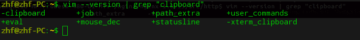 使用:vim –version | grep “clipboard” 命令查看vim是否支持剪切版,减号表示不支持