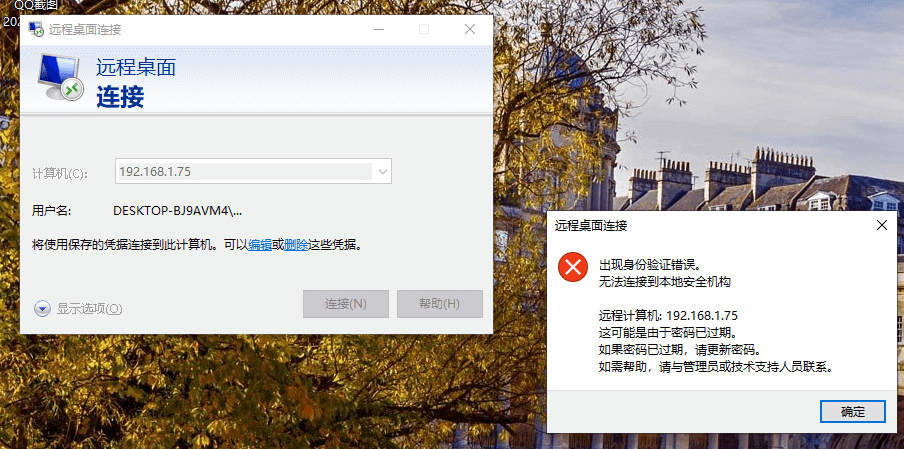 从windows10上进行远程桌面链接win server 2019,出现了:“出现身份验证错误,无法连接到本地安全机构,这可能由于密码已过期。”