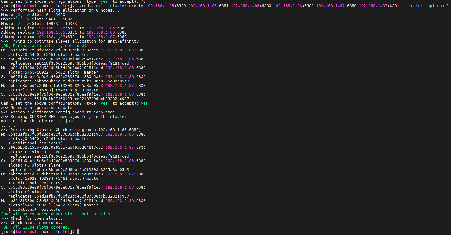 输入一个yes之后,最后成功启动了redis集群
