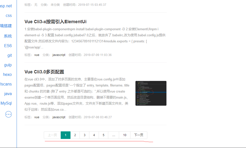 以上就是全部的分页代码了,去掉跳转的函数,去掉其他的不确定因素(其实因为hexo生成的是静态站,所以没有后台,分页信息只是我通过为div绑定数据的方式,实现了分页信息的固定化)。