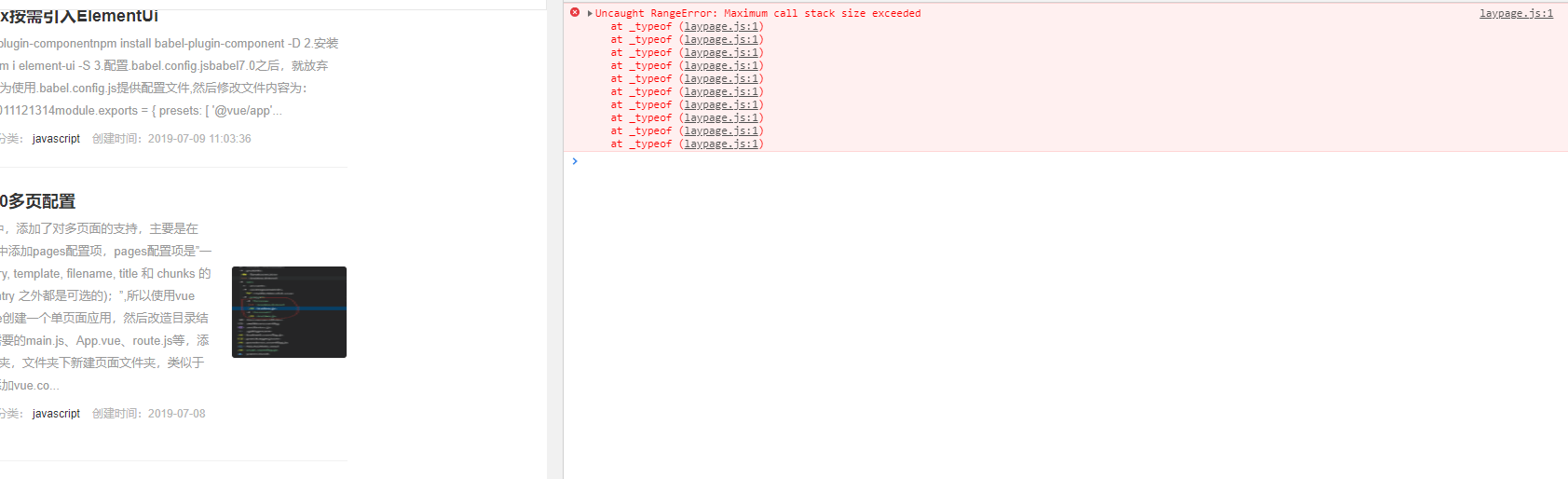如果我去掉这一步,直接部署,那么是没有问题的,但是如果我加上这一步,问题就出现了,laypage无法初始化,出现了“Maximum call stack size exceeded”