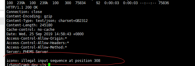 6.终端使用curl请求url时返回乱码的解决:https://blog.csdn.net/benben0729/article/details/80882553 (这篇文章中提供了两个步骤解决乱码的问题,第一个就是解压,第二个才是iconv,但是我用第一种解压方法,即使用gungzip没有用,报错了,所以改用–compressed即可)