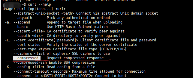 而且使用:curl -h,显示却有这个–compressed命令。