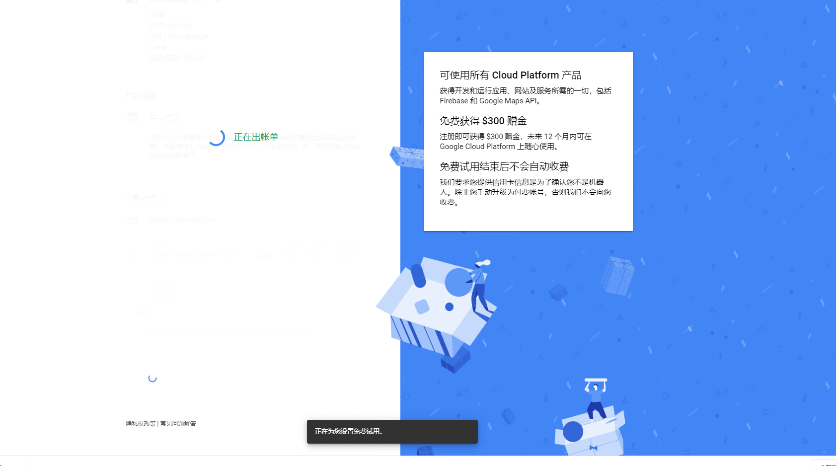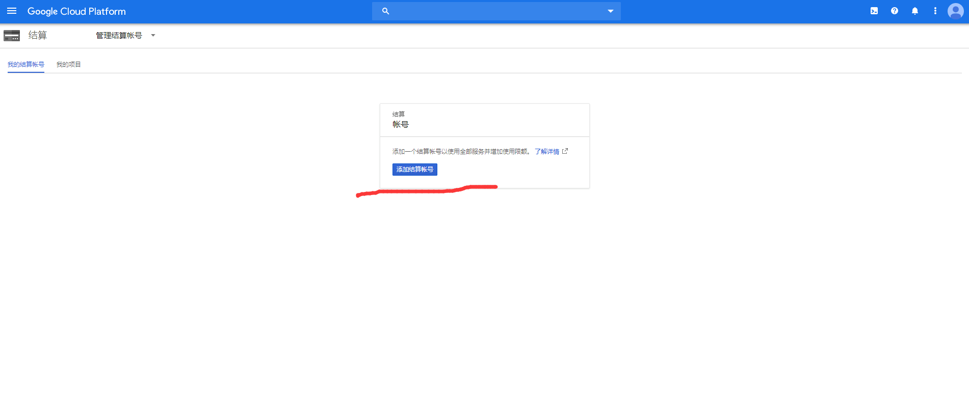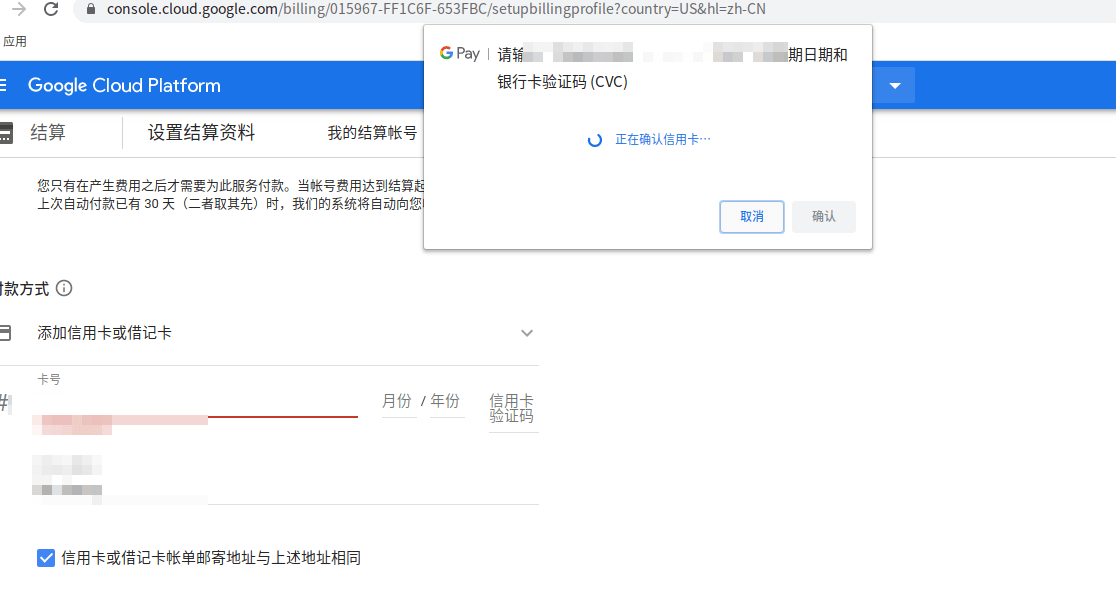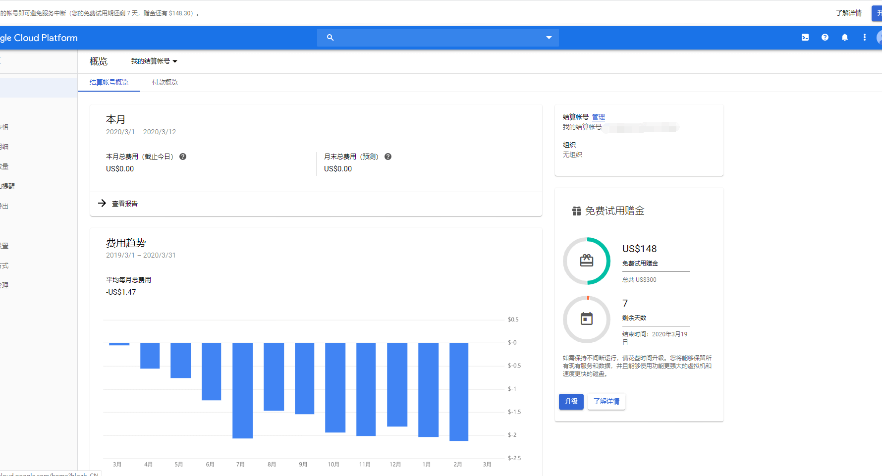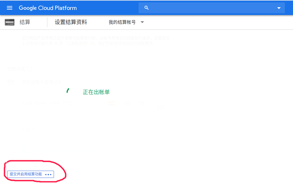 (6) 重新登录谷歌云,会提示没有结算账户