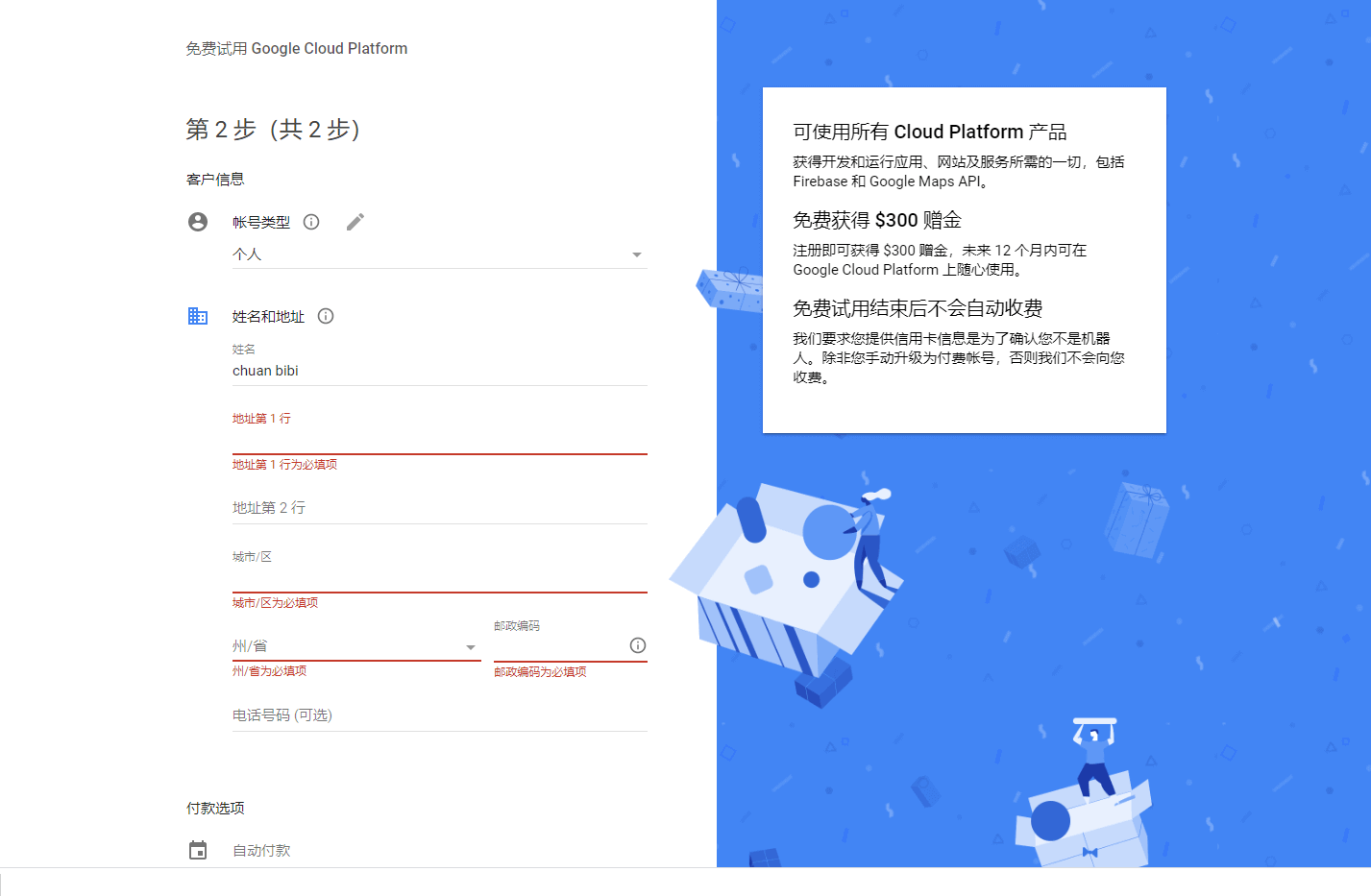 经过多次验证,和多次提交,虽然最后验证成功了,但是已经没有三百美金的试用了。