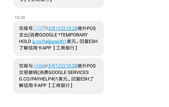 (5) 这里是为了验证我信用卡的有效性,从我信用卡里扣的1美元,然后又还回来的截图。