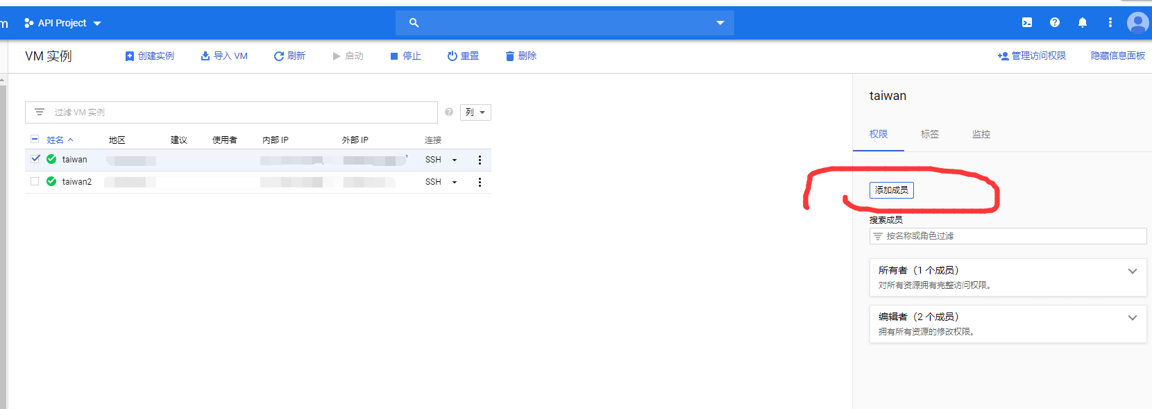 可以看到新用户已经能看到了老用户的VM实例。