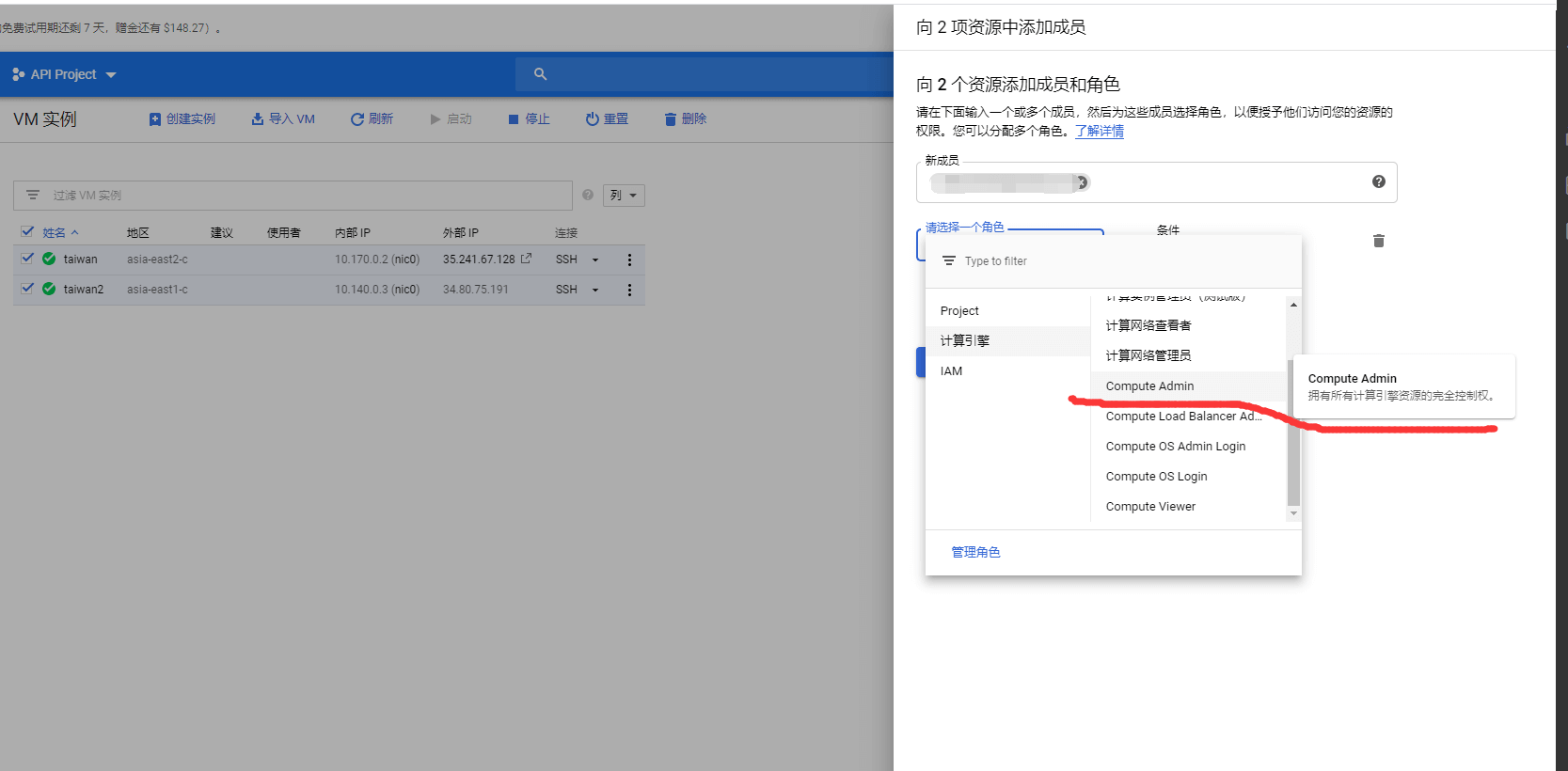 (2) 添加为Compute Admin