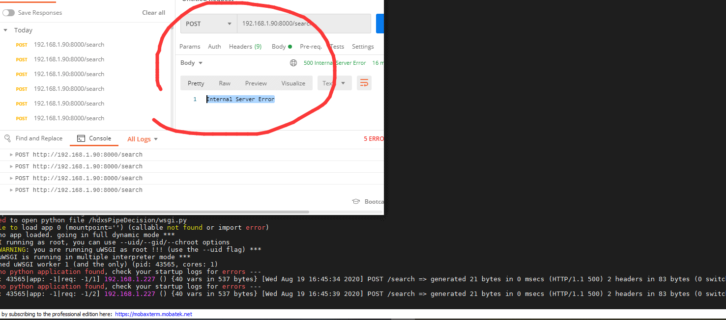 (1) Internal Server Error