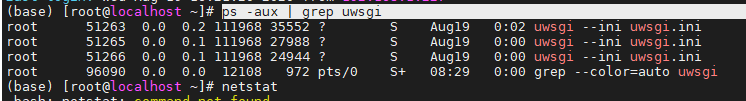 当我使用ini文件的方式进行启动的的时候,使用:ps -aux |grep uwsgi 命令,查询启动进程,发现uwsgi已经启动了