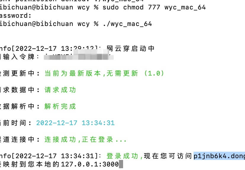 这里我暂时用了mac的客户端,启动之后,会让输入令牌,将控制台的令牌输入进去就可以了。