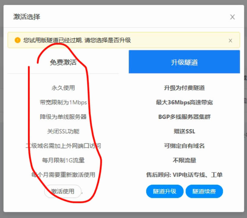 后来我只能放弃了这个东西了,因为激活版,只能是TCP隧道,不支持http协议,每一个月都要激活一次,每一个月只有1G流量
