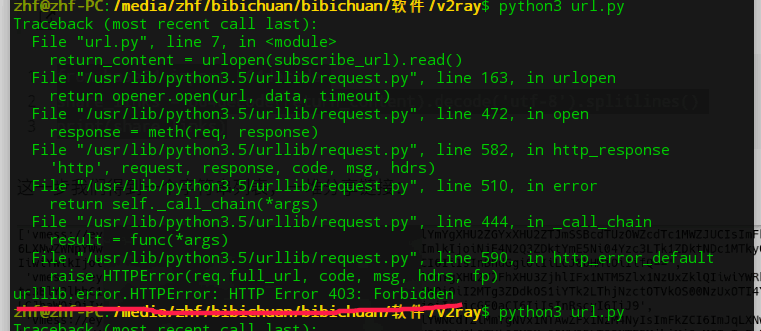 通过参考文章,以及查阅相关语法,最终我使用python3执行以下相关代码,获得了v2ray订阅地址并进行了解析。
