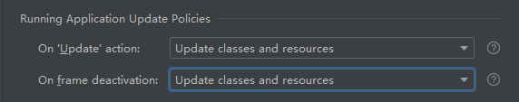 说是解决方法,其实我觉得可能不太合适。我的操作方法就是,打开 Run/Debug Configurations 配置框,设置 On ‘Update’ action 为 更新classes和resources。但是这样做之后,即便是不使用JRebel也能实现修改js文件然后刷新页面,实现自动部署了,这就和JRebel没有半点关系了。