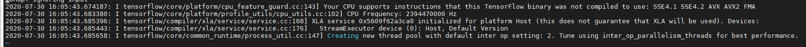 7.Your CPU supports instructions that this TensorFlow binary was not compiled to use: SSE4.1 SSE4.2 AVX AVX2 FMA