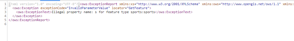 1 2 3 4 5 6 7 8 9 10 11 12 13 14 15 16 17 18 19 import { WFS } from 'ol/format.js' ;import { within as withinFilter } from 'ol/format/filter.js' ;var featureRequest = new WFS ().writeGetFeature ({ srsName : 'EPSG:4326' , featurePrefix : 'sports' , featureNS : 'sports' , featureTypes : ['sports' ], outputFormat : 'application/json' , filter :withinFilter ('the_geom' , polygonGeom) }); let filter=new XMLSerializer ().serializeToString (featureRequest);ajax ({ method : 'post' , dataType : 'xml' , url : 'http://localhost:8080/geoserver/wfs' , data : filter }).then (res => { console .log (res); })
