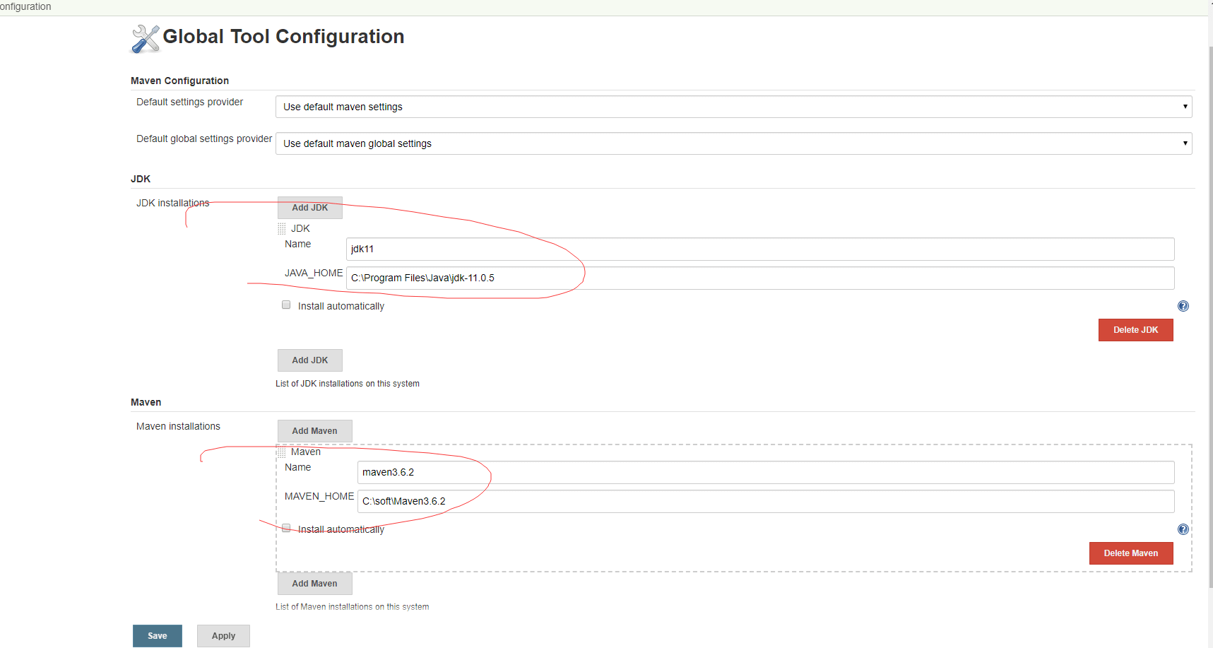 Manage Jenkins->Global Tool Configuration->JDK->Maven