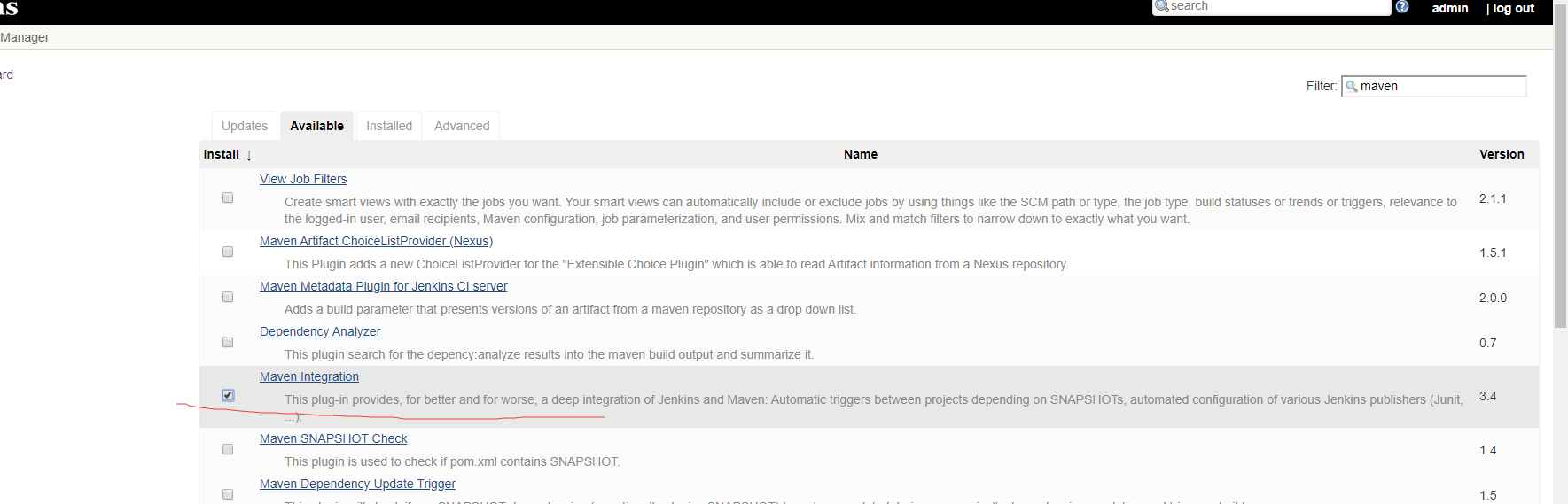 Manage Jenkins->Manage Plugins->Available->Maven Integration