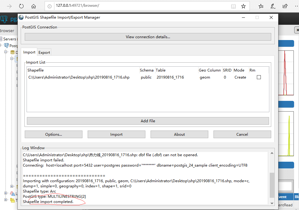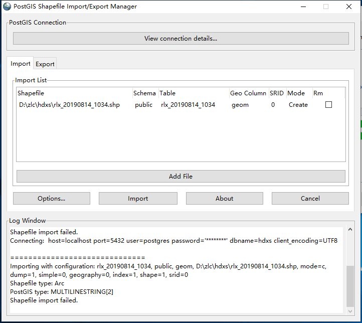 1.POSTGIS导入shp失败,求各位大神支招