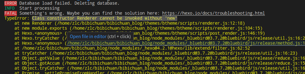 后来在hexo从3.x升级到4.x的过程中,出现了:Class constructor Renderer cannot be invoked without ‘new’ 的错误。